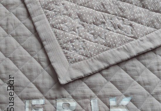 Sowas in der Art habe ich schon einmal gemacht und ich denke, dass ist ein super Geschenk zur Geburt. Die kleine Krabbeldecke für Erik ist aus gesteppten Baumwoll-Musselin. Für die Einfassung habe ich die Steppung aufgetrennt und eben anders […]